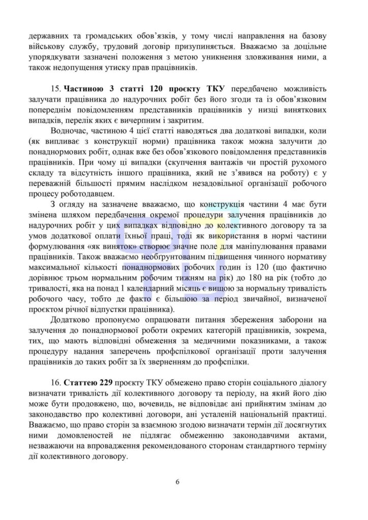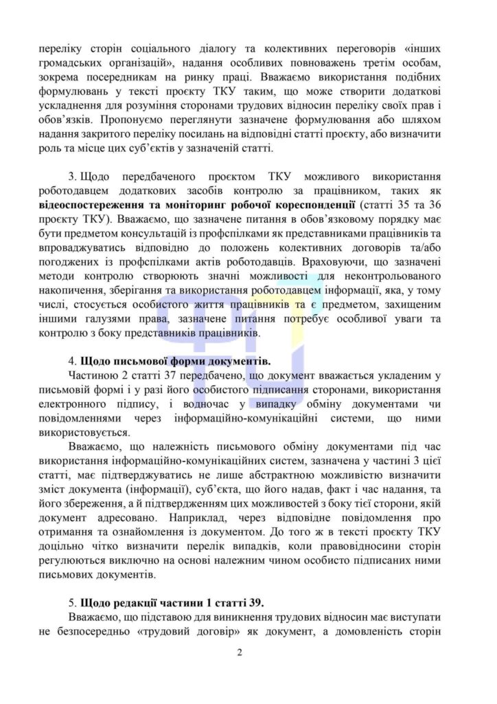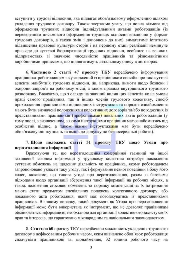 Ми підготували базовий перелік конкретних зауважень та пропозицій до проєкту Кодексу, за умови врахування яких документ може стати дійсною європейською «Трудовою Конституцією України», не спричинивши колапс трудових відносин від скасування Кодексу законів про працю, який вірно служив українцям багато десятиліть, зазнав кардинальних змін і доопрацювань та, попри всі виклики та потоки критики, стримав український ринок праці від колапсу і у часи економічних криз 90-х, і під час агресії на Сході, і в умовах пандемії, й під час повномасштабного вторгнення.
